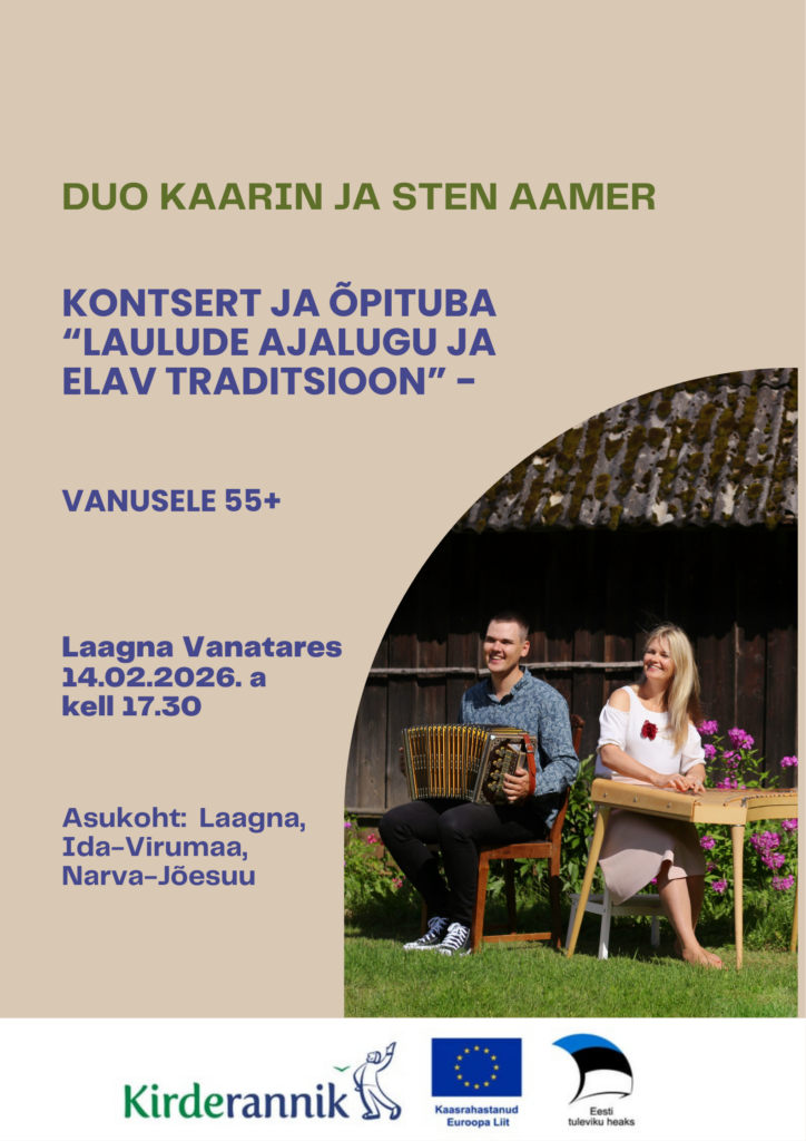 olete oodatud kontsert-õpituppa, mis toimub 14. veebruaril kell 17.30 Vanatares, Laagnal, Narva-Jõesuus.